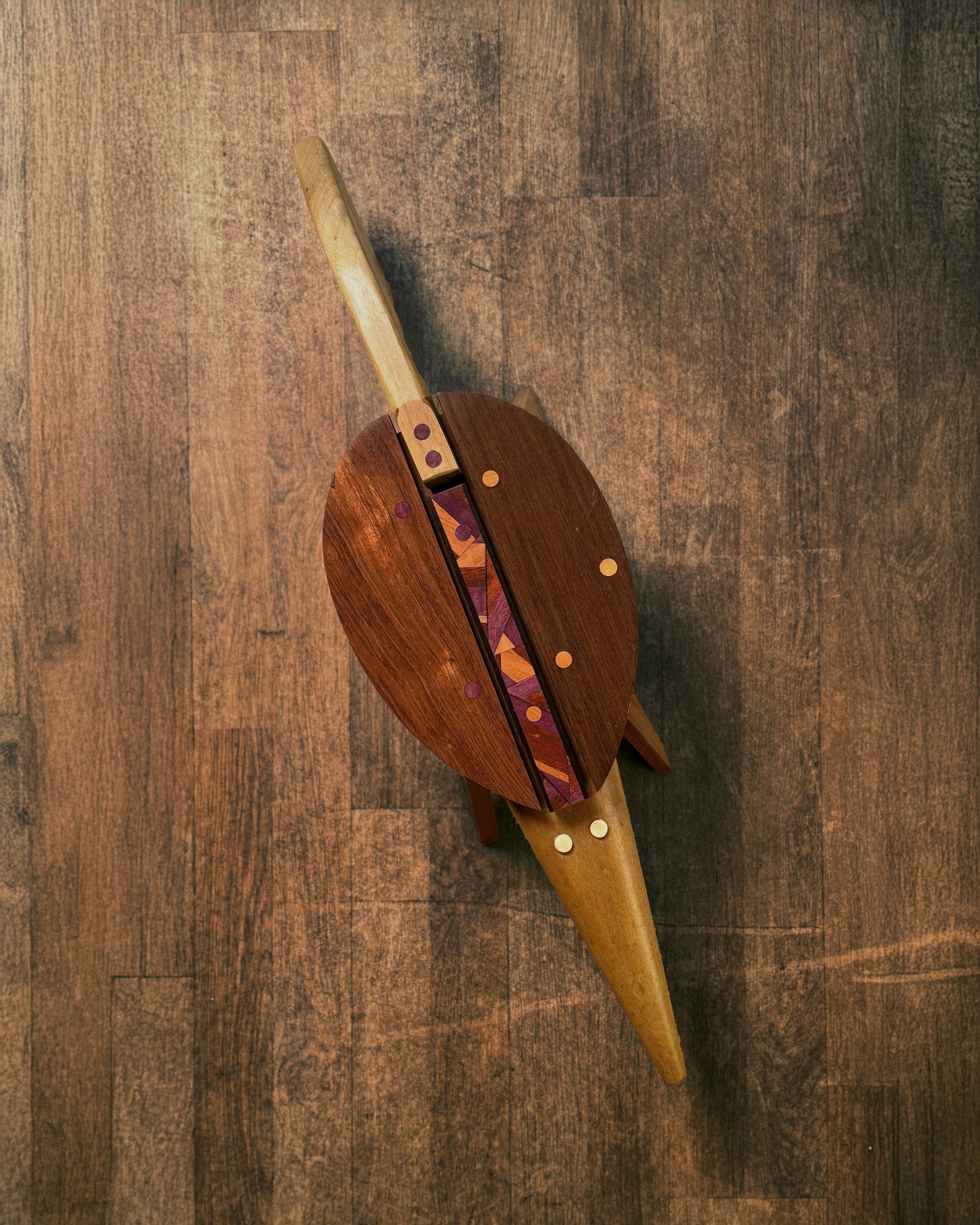 O acabamento das peças utiliza óleo mineral e cera orgânica de modo a conservar a textura e odor naturais da madeira, permitindo seu processo de envelhecimento característico. Lembre-se: a madeira é uma matéria-prima viva que reage à passagem do tempo e às condições ambientais.