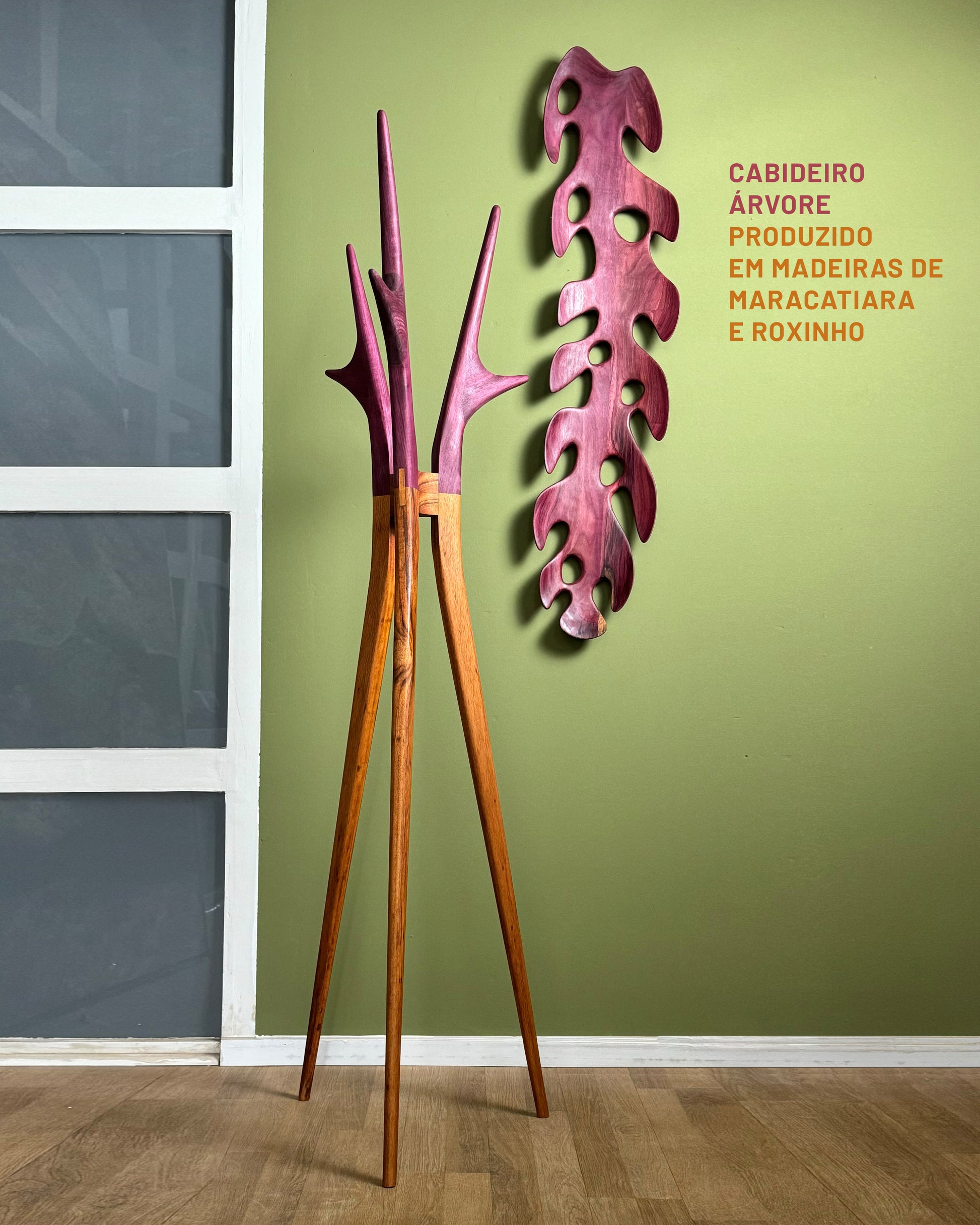 "O cabideiro árvore é um dos poucos itens de mobiliário que sempre mantenho em meu catálogo. Uma peça tradicional onde não são usados pregos ou parafusos, apenas encaixes e acabamento todo manual."