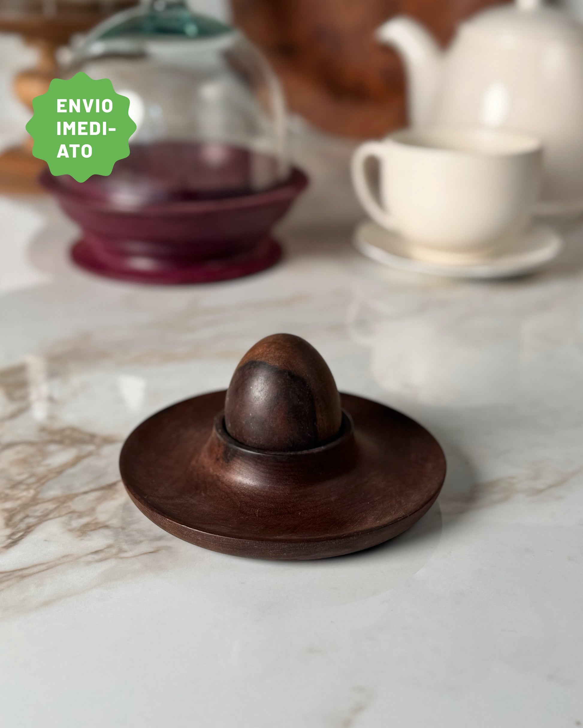 "Adoro ovo molinho para comer de colher. Criei essa base especificamente para isso. Além de aparar as casquinhas do ovo, a base evita que o sal e a pimenta caiam em cima da mesa. Problema resolvido e homenagem ao meu primo Benedito."