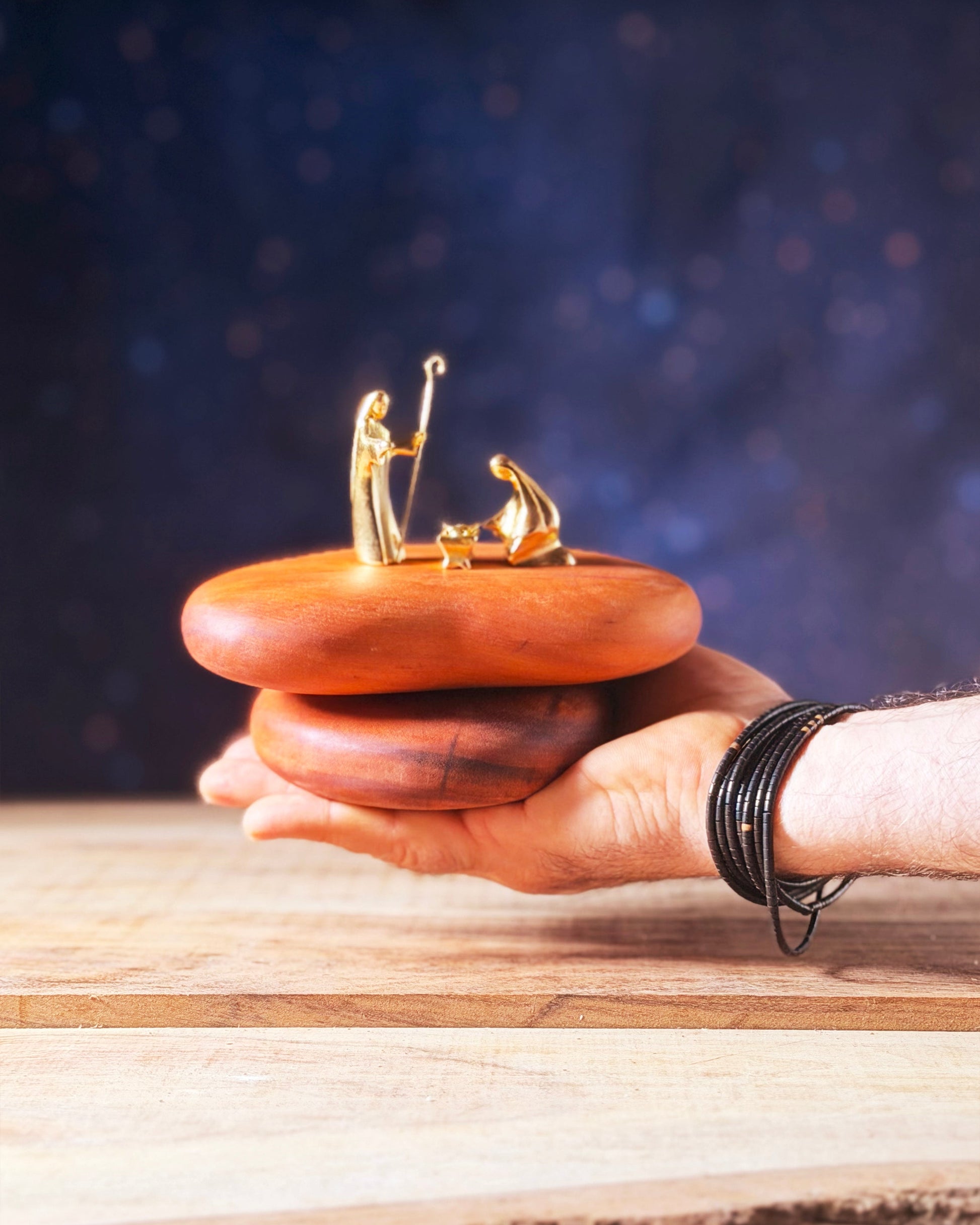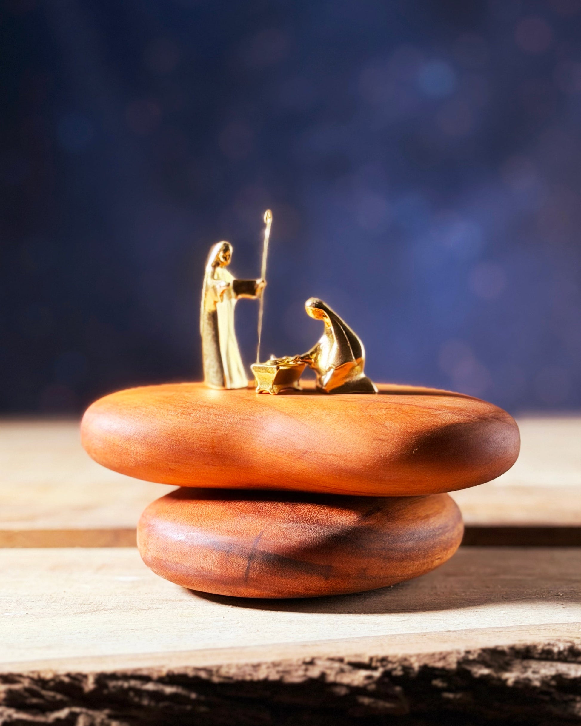 Pequeno no tamanho e grande no significado. Um presépio que cabe na palma da mão, e no coração. Apenas o essencial para o milagre acontecer.