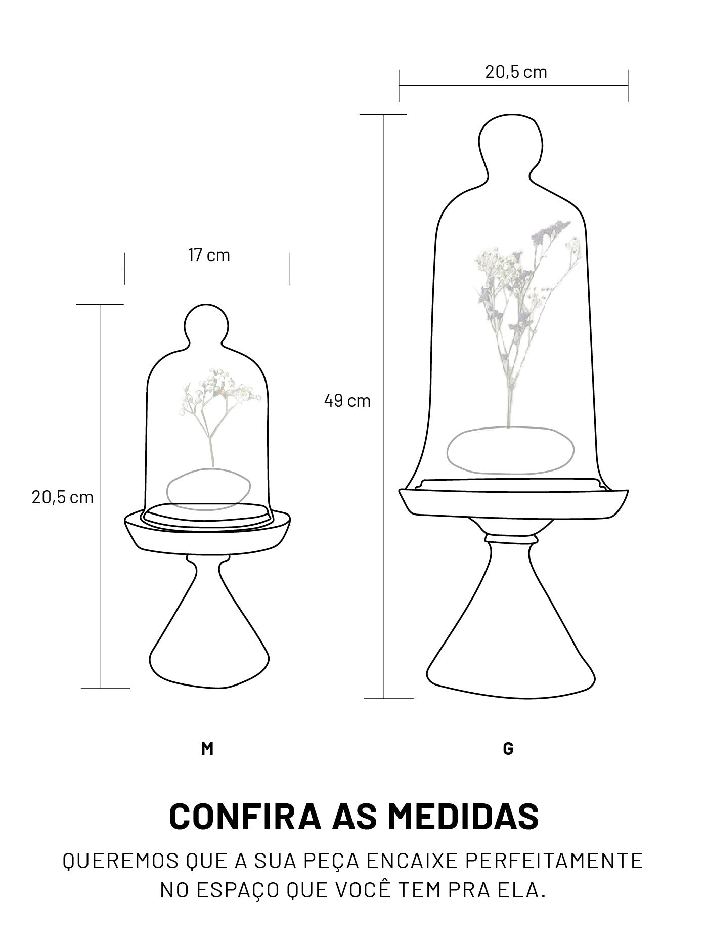 Pedestal produzido em madeiras de imbuia, freijó, peroba-rosa e pinho-de-riga. Acompanha cúpula de vidro e pedra em ambos os tamanhos